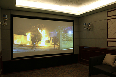 業(yè)主對影音需求很高,所以在地下室有一個專門的房間作為私人影院。我們采用了美國James 63FX入墻式揚聲器+1只James EMB1000低音炮組成5.1.4環(huán)繞音效,Marantz功放搭配威動在線影庫,營造了逼真的聲效,讓業(yè)主感受到身臨其境的影音效果,我們綜合業(yè)主對視頻畫面品質(zhì)的要求和預(yù)算,推薦使用了Espon TZ1000配合133寸JK透聲幕布。