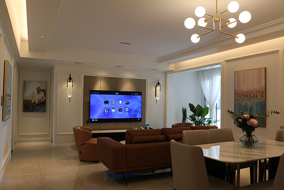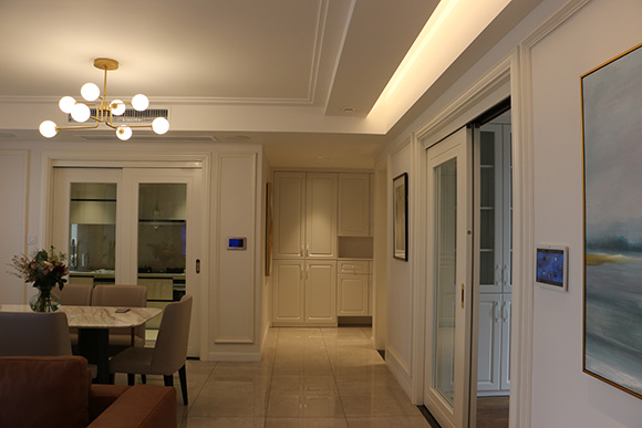 項(xiàng)目以全宅智能化的方式來(lái)設(shè)計(jì)這個(gè)展廳,采用美國(guó)Control4總線控制系統(tǒng),?EA-5作為控制主機(jī),配合Control4總線玻璃場(chǎng)景面板,來(lái)搭建整個(gè)智能家居控制系統(tǒng)。入戶、客廳、餐廳、書房、主臥室、次臥室、兒童房、廚房八個(gè)區(qū)域的智能控制。