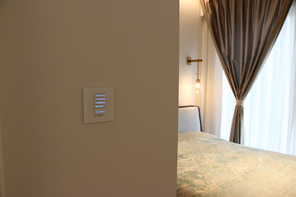 ? ? ?在入戶門口,設(shè)置了一個(gè)總線場(chǎng)景面板,設(shè)置了回家模式,會(huì)客模式,離家模式。
