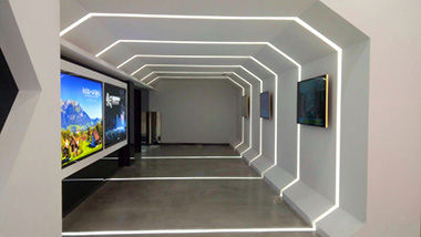? ? ? 我們通過對現(xiàn)場實(shí)際情況考察,面積大小,以及實(shí)現(xiàn)的功能和需求,給甲方多次溝通協(xié)商后,最終確定采用美國Control4智能控制系統(tǒng).對整個(gè)展館的燈光進(jìn)行了場景的控制,電腦也進(jìn)行了開關(guān)的控制,在入門口我們設(shè)置一個(gè)場景面板,照明全開場景、電腦全開場景、展館全開場景、離開場景等。項(xiàng)目除了對整個(gè)展廳燈光做了智能控制,擴(kuò)音設(shè)備、安防監(jiān)控、視頻系統(tǒng)也進(jìn)行了集中的控制,無論是面板、手機(jī)、觸控屏都可以一鍵控制整個(gè)展廳。
