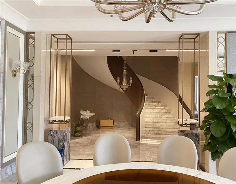 業(yè)主家里客廳、餐廳、臥室的窗簾全部是智能控制的,項(xiàng)目共使用了25套雙軌,內(nèi)外兩層,紗簾與布簾都可以分開操作,設(shè)計(jì)師設(shè)置成日落后臥室窗簾自動關(guān)閉,早上按“晨起”時(shí),臥室布簾輕輕打開,在任何地方,家中的所有窗簾都可以通過墻面開關(guān)、觸摸屏或是手機(jī)來控制。