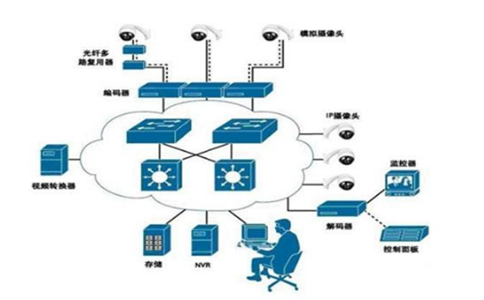 5.安防監(jiān)控系統(tǒng):通過(guò)安裝在現(xiàn)場(chǎng)的攝像機(jī)、防盜探測(cè)器等設(shè)備,對(duì)建筑物的各出入口和一些重要場(chǎng)所進(jìn)行監(jiān)視和異常情況報(bào)警等;視頻信號(hào)的傳輸采用星型結(jié)構(gòu),使用視頻同軸電纜;控制信號(hào)的傳 輸采用總線結(jié)構(gòu),使用銅芯絕緣纜線。