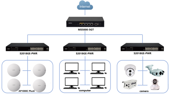 集合路由、核心交換、無線控制(AC)、防火墻、認(rèn)證管理、行為管理等六大功能為一體,一機(jī)解決傳統(tǒng)方案中需要分別購(gòu)置多臺(tái)設(shè)備的難題。Cetron MS5000-5GT可以管理64臺(tái)Cetron無線AP,集中完成無線配置管理工作。同時(shí)最多可以下發(fā)4個(gè)不同的網(wǎng)段解決Vlan的劃分問題。